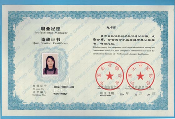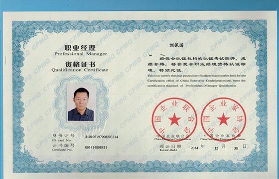 热烈祝贺我公司刘保国等6位同志获得职业经理人资格证书