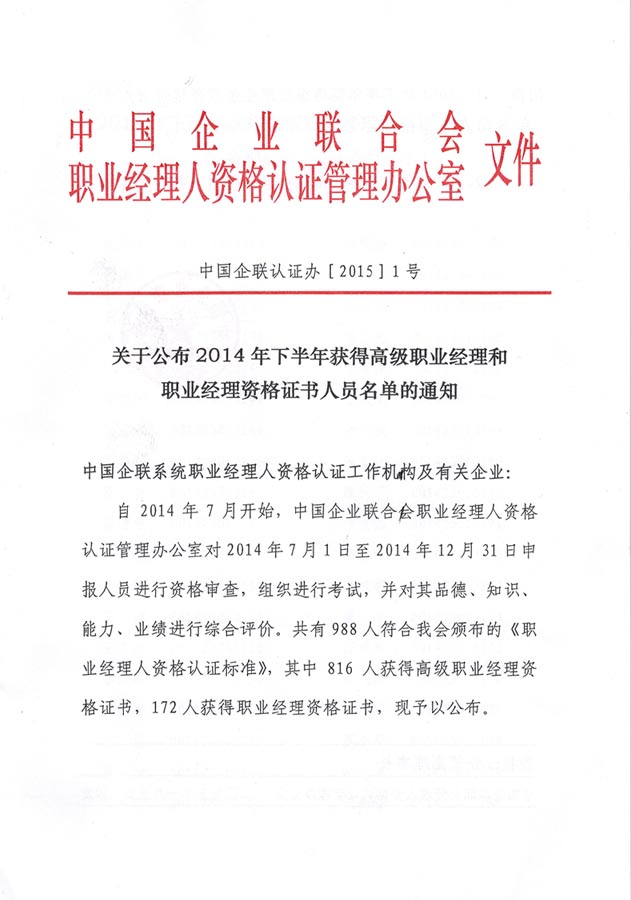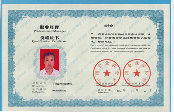 热烈祝贺我公司刘保国等6位同志获得职业经理人资格证书
